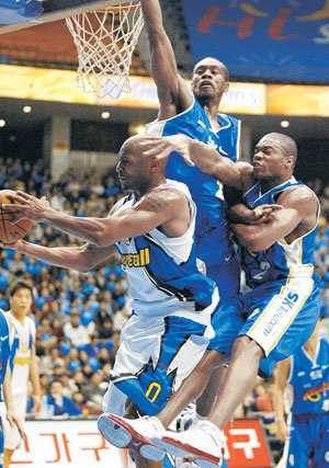 25日,在原州雉嶽體育館舉行的2003~2004年Anycall職業籃球聯賽中,TG三寶隊以80-67大勝SBS隊。