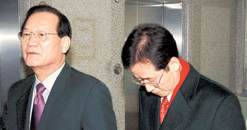 被稱爲“最佳組合”的大國家黨代表崔秉烈(左)與戰略企劃委員長洪准杓。14日,洪准杓維護崔秉烈說,“眼裏只有議會選舉,要求崔秉烈代表讓位的做法是要求解散党的行爲。”