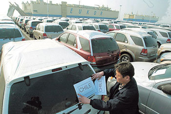 隨著韓、智自由貿易協定(FTA)批准案在國會表決通過,針對智利的韓國企業的出口有望更加活躍。22日下午,在京畿平澤港起亞汽車出口碼頭,即將出口到智利的汽車正等待裝船。