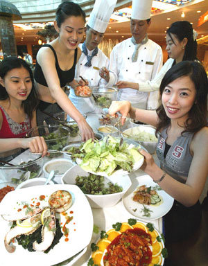 漢城汝矣島63大廈噴水廣場正在舉行由有機農色拉和海産品料理等食物組成的“well-being飲食節”。在慶祝活動中,廚師將根據個人嗜好爲顧客配製不同的色拉。