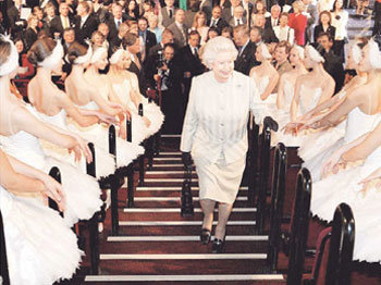 英國女王伊麗莎白二世在皇家艾伯特大廳受到了英國國立芭蕾舞團的演員們的歡迎,皇家艾伯特大廳剛剛結束8年的維修工程並再次投入使用。倫敦名勝——皇家艾伯特音樂廳維修工程花費了7000萬英鎊(約1470億韓元)。