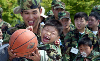 6日,140名漢城東川學校的精神障礙殘疾兒童到江原原州市陸軍第36師團,與官兵們一同打球,度過了快樂的一天。