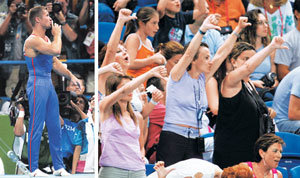 24日,在進行2004雅典奧運會男子體操單項決賽的單杠比賽的奧林匹克室內體育館,包括4枚奧運金牌在內共獲得過12枚金牌的涅莫夫(俄羅斯)在觀衆們的歡呼聲中站到了比賽場上。這一專案是他的強項,他在1996年亞特蘭大奧運會上獲得銅牌後,在2000年悉尼奧運會上獲得了金牌。