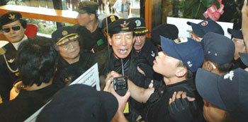 26日下午,150多名漢城在鄉軍人會會員在漢城中區乙支路1街國家人權委員會辦公樓前舉行集會敦促說,“人權委應立即撤回廢除《國家安全法》建議並向國民道歉。”他們在集會途中企圖沖進辦公樓,警方正在進行阻止。
