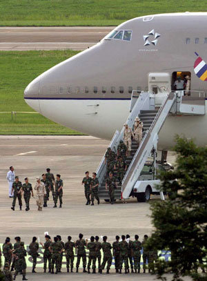 28日,軍隊相關人士在京畿城南市漢城機場歡送了前往伊拉克的宰桐部隊主力。當天,“反對向伊拉克派兵緊急國民行動”的會員在機場前舉行了反對派兵示威。