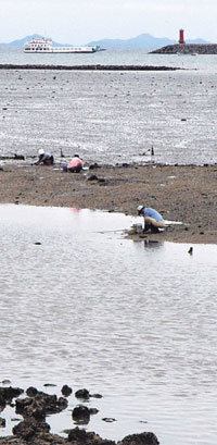 看不到避暑客的島又回到了往日的平靜。退潮後的海灘只留下歪歪的船隻。在那裏可以看到手法嫺熟的挖貝殼的婦女們。在退潮後的海邊還可以看到垂釣將用於晚餐的鮮魚的村夫。因建設放射性廢棄物處理場問題爭論不休的當時的騷亂就像是很久以前的事情一樣,島內一片安靜平和。