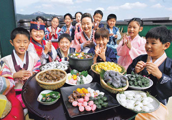 韓國傳統飲食研究所於14日在漢城鍾路區研究所舉行了“製作全國8個道不同大米糕”活動。圖爲參加該活動的仁獻小學2年級學生正在學習製作大米糕的方法。