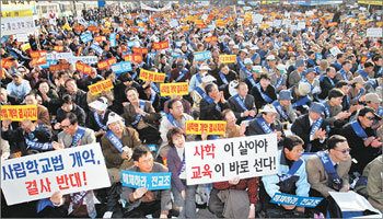 7日下午2時,韓國私學法人聯合會等私學相關團體在漢城站廣場舉行了“爲阻止修改私立學校法、教育法的全國教育者大會”,強烈敦促撤消私學法修改案。