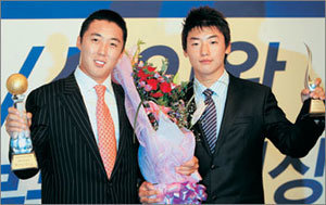 從韓國棒球委員會(KBO)總裁朴容旿手中接過價值2000萬韓元的金球獎盃的裴永洙高高擡起了雙臂。此動作就是在韓國循環賽第4場比賽上創下10個回合無失分的成績後,在高喊“裴永洙”的球迷們面前答謝的動作。緊接著就是閃光燈洗禮……