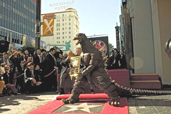 上月29日,在美國加利福尼亞好萊塢舉行了紀念哥斯拉登上銀幕50周年活動。在當天的活動上還舉行了哥斯拉系列的第28集(最後一集)《哥斯拉最後的戰爭》試映會。
