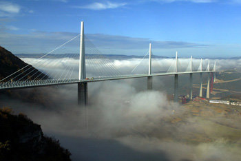 在連接法國巴黎和西班牙巴賽隆納的高速公路區間中,架設在法國南部塔恩河上空的橋是世上最高的橋,高度爲343米。7座橋墩聳立在霧中。該橋將在14日舉行紀念儀式後,投入使用。