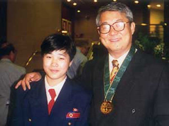圖爲2000年在中國被綁架的金東植牧師在1996年美國亞特蘭大奧運會上,與北韓柔道代表隊選手桂順姬並肩站立。居住在美國的金東植的妻子鄭英華(音譯)表示:“在亞特蘭大奧運會時,丈夫擔任了北韓代表團的翻譯和導遊,他把桂順姬視爲自己的女兒,予以鼓勵。”