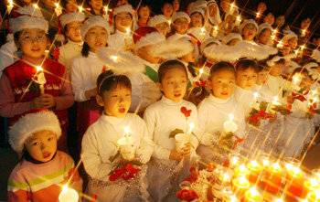 耶誕節前夕的24日下午,在漢城恩平區恩平聖潔教堂舉行了“2004年兒童青少年慶祝耶誕節教堂禮拜”活動。圖爲,在禮拜最後,兒童們點亮蠟燭詠唱著《真高興,救世主誕生了》。雖然今年比以往任何一年都困難,但在迎來耶誕節之際,希望祝福和愛心撒滿人間。