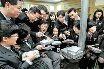 “復古風格的終結儀式”。校服生産企業常青俱樂部於27日在漢城瑞草區良才2洞總公司舉行了所有職員穿校服,按照20世紀70年代流行的風格,吃著盒飯,結束一年業務的活動。