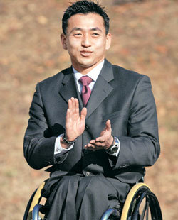 度過了永遠無法忘記的一年的洪錫萬的臉上綻開了燦爛的笑容。燦爛的笑容裏沒有任何陰影。當提到“西服非常合身”時,他笑著說,“這是2002年釜山殘疾人亞運會時韓國隊的隊服,由於設計的好,平時穿起來也感覺很不錯。”