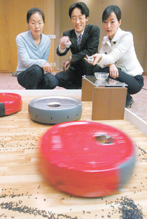 清掃機器人製造公司Yujinrobot18日在漢城江南區韓國貿易中心亞歐會議廳展示了國產清掃機器人“IClebo”。Yujinrobot公司表示,該機器人以與真空吸塵器一樣的原理,吸掉地板上的灰塵。售價爲30萬韓元。