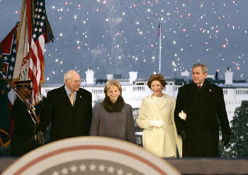 於20日中午(當地時間)結束就任儀式的美利堅合衆國第43屆總統喬治·W·布希於就任前夜19日晚與夫人勞拉女士和副總統切尼夫婦一同出席了“自由進步”活動(從右至左)。
