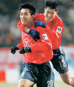 另外,有人評價說,“旋風小子”李榮杓(28歲)和“米老鼠”朴智星(24歲,以上均爲埃因霍溫隊)所展現的“全攻全守型足球”也成爲在對科威特一戰上取得勝利的原動力。目前在主教練希丁克的指揮下踢球的他們並沒有拘泥於場上位置,而是穿梭在縱橫無盡的球場上,在進攻和防守上都有不俗的表現。李榮杓在下半場第35分鐘,接朴智星的傳球攻進了制勝一球,助韓國隊以2-0獲勝。