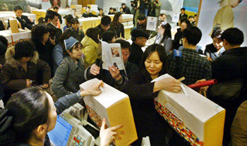11日,樂天百貨上天推出了“新年祝福套裝禮品”活動。在首爾總店和蠶室分店、永登浦分店、釜山總店,以3萬~5萬韓元的價格出售了手提包、餐桌、床、領帶等商品和附贈商品券的2005套祝福套裝禮品。顧客在不知具體內容物的情況下挑選套裝禮品,因而,雖然每件商品的單價比市價低40%~90%,但仍有一些未能挑到心儀商品的顧客提出了抗議。