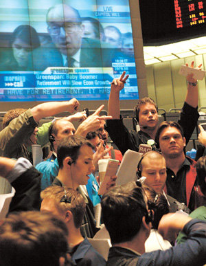 美聯儲主席格林斯潘17日在美國參議院金融委員會提出了積極上調利率的政策。格林斯潘的發言被公開後,美國芝加哥商品交易所的期貨價格呈現觀望態勢。