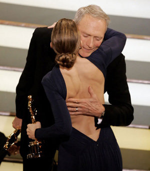 描述女拳擊手和年邁的教練之間感人的友誼的《百萬美元寶貝》入圍7個競爭單元,獲得了最佳改編劇本、最佳導演、最佳女主角(希拉裏·斯萬克)、最佳男配角(摩根·弗裏曼)等奧斯卡4個主要獎項。憑藉影片《不被饒恕的人》獲得1993年奧斯卡最佳導演獎的演員兼導演克林特·伊斯特伍德(75歲)獲獎後表示:“拍電影的37天是一次很精彩的冒險。我對自己還能工作感到高興。我的96歲的母親也坐在那裏(席位),對她傳給我的年輕的遺傳因數表示感謝。”他的話博得了現場的熱烈掌聲。