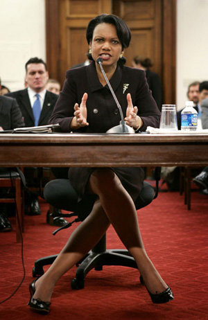 圖爲,9日出席美國衆議院年度總支出委員會的國務卿賴斯。她將從14日開始展開就任以後首次對包括韓國在內的亞洲6個國家的訪問。這是“康迪(賴斯的昵稱)外交”的第一次出訪。