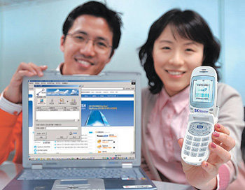 SK電信23日宣佈,計劃和新韓銀行及朝興銀行攜手合作,在下個月將“手機認證服務”商業化。該服務是將個人電腦的網上銀行公認認證書傳送到手機上保存,並可以在其他電腦上使用。只要在沒有認證書的電腦上,輸入保存了認證書的手機號碼就能夠直接登錄到網上銀行接受服務。
