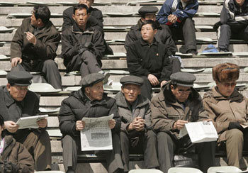 25日,因舉行2006德國世界盃亞洲區最終預選賽B組第2輪北韓隊對巴林隊的比賽,北韓居民一大早就來到了平壤金日成競技場,等待比賽的開始。似乎天氣和南方一樣,春寒料峭,大部分人都穿上大衣並戴上了帽子。當天在6萬多名觀衆的熱烈助威之下,北韓隊仍然以1-2負于對手,以2負的戰績下降到了小組最末尾。