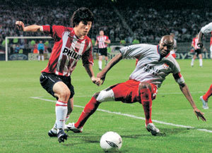 在主場觀衆熱烈的加油聲中,雖然奧林匹克里昂隊先進一球主導了比賽,但是朴智星和科庫的一次精妙的配合,便終結了他們的夢想。