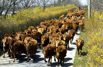 15日,韓國農協中央會家畜改良事業所表示,已把200頭韓牛移動到忠清南道西山市雲山面草地放養。家畜改良事業所計劃,在本月內分3次增加放養700頭韓牛。這些韓牛將在雲山面附近占地210坪的草地上放養到11月份。