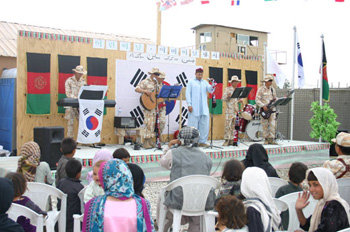 駐紮在阿富汗巴格拉姆基地執行建設及醫療支援任務的韓國軍支援隊(茶山、東醫部隊)在5日迎接兒童節,將當地的小朋友邀請到部隊舉行了慰問演出。