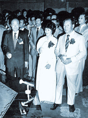 1983年5月,現代汽車公司舉行了第二個自主車型“STELLA”的新車發佈會。以此爲契機,現代汽車公司譜寫了國內中型汽車市場的歷史新篇章。圖爲,已故現代集團名譽總裁鄭周永(右)和已故現代産業開發名譽總裁鄭世永(左)。