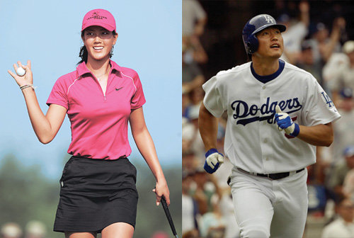 13日是“韓國長打(Longest)”之日。在美國馬里蘭州Havre de Grace布勒岩石(Bulle Rock)俱樂部(72杆)舉行的本賽季第2場職業高爾夫比賽麥當勞LPGA錦標賽上,上升到單獨第2位的“長打少女” 米歇爾•魏以平標準杆完成最後第18洞的比賽之後,正在向歡呼的觀衆揮手(左)。“大力士”崔熙燮(洛杉磯道奇隊)在洛杉磯道奇球場舉行的美國職棒聯賽洛杉磯道奇隊對明尼蘇達隊的主場比賽上,在3-3平分的第6局末,繼之前打出的兩個本壘打之後,又打出了第3個本壘打。圖中,崔熙燮正在目視飛行的球。