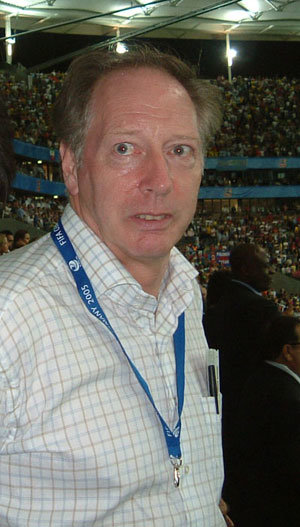 現任韓國國家隊主教練邦弗雷雷(59歲)6月17日正式與韓國足協簽約,他執教韓國國家隊已有1年時間。30日,記者在2005聯合會杯總決賽巴西隊對阿根廷隊的比賽現場——德國法蘭克福森林體育場見到了邦弗雷雷。