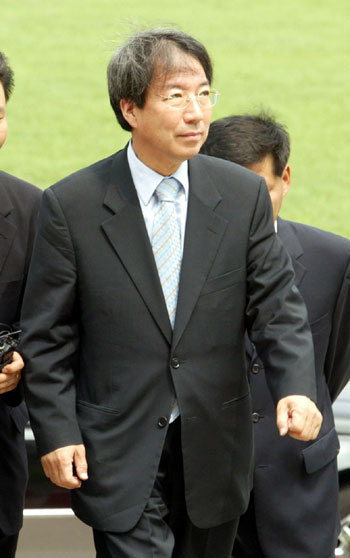 7日,首爾大學校長鄭雲燦對記者的提問一概不予回應,徑自走向首爾大學冠樂校園內的主樓辦公室。