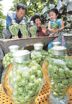 在京畿漣川郡全穀邑薪畓裏一家農場,一家人正在收穫在瓶中生長的葡萄。由漣川郡農業技術中心所開發的“瓶中葡萄”是在結果期用瓶子罩住葡萄,等到全部成熟以後連瓶一起收穫,灌入美酒之後出售。