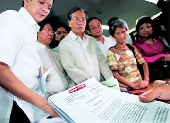 菲律賓在野黨議員25日向衆議院提出了格洛麗亞•馬卡帕加爾•阿羅約總統彈劾案。議員們警告稱,如果衆議院否決彈劾案,可能爆發“人民力量”革命。當天,馬尼拉出現了數千人組成的示威隊伍,他們向議會方向遊行,要求阿羅約辭職。