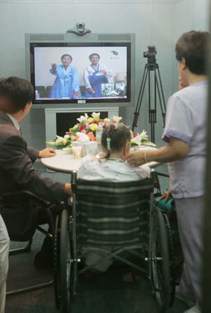 迎來光復60周年的15日,在首爾、光州、釜山等全國7個城市12個地點首次實施了南北離散家屬視頻通話。金梅女老人1948年將兩個女兒黃普貝和黃學實留在了新義州,雙方雖然通過影像得以見面,但是老人因患有腦中風而未能認出兩個女兒,讓周圍人非常難過。