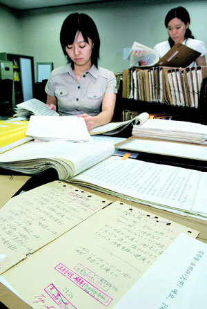 26日,職員們正在首爾瑞草區瑞草洞外交安保研究院外交文書公開閱覽室中整理公開的韓日會談相關文書。