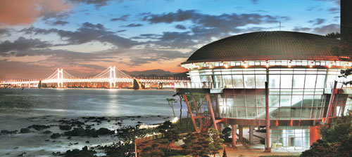 圖爲,將舉行亞太經合組織(APEC)領導人非正式會議的“Nurimaru APEC大樓”的夜景。亞太經合組織(APEC)領導人非正式會議將於11月在釜山舉行。計劃於14日竣工的Nurimaru是意味著世界的韓國語“Nuri”和意味著領導人的“maru”的合成詞。意思是說,領導人聚集的地方。