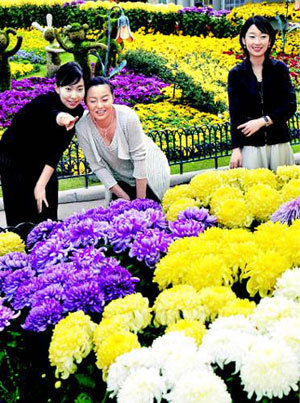 20日,中秋假期結束之後,想充分享受秋天的女性們來到京畿龍仁遊樂園觀賞菊花。