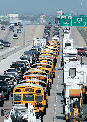 大逃亡開始了。美國歷史上第三個強烈的颶風“麗塔”接近德克薩斯州沿岸之後,州政府宣佈進行緊急狀態,並對加爾維斯敦、休士頓等德克薩斯南部地區130萬居民下達了強制逃避令。因此,21日,預計將成爲受災地區的加爾維斯敦居民爲了逃避災難,乘坐轎車轉移到了德克薩斯北部地區。當天,在通往德克薩斯北部的45號高速公路上,逃難的車輛連綿不斷。