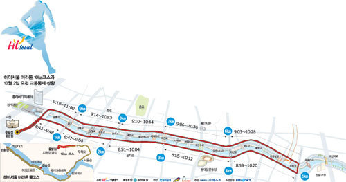 ● 重要的不是記錄和排名的而是Fun Run(快樂賽跑)=專家忠告說,既然這是特別的比賽,參加者就不應該過於重視記錄,而應該進行一邊欣賞生命重新流淌的清溪川賽跑的“快樂賽跑”。尤其是毛廛橋和世運橋周圍是石路,因此一不小心就有扭傷腳腕的危險。最近一些馬拉松選手因強行出戰或爲創造紀錄拼命奔跑,最終導致猝死,因此參加者應該格外注意。