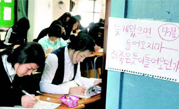 25日距高考還剩不到一個月的時間,而在首爾鍾路區豐文女子高中(音)3年級教室裏,學生們正在緊張地解題。爲鼓勵學習貼在教室門上的字句好像在顯示著考生的緊張情緒。