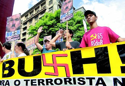 5日,反對美國總統喬治•W•布希訪問巴西的示威隊伍正高舉將布希描繪成納粹分子希特勒的牌子進行反美示威。參加在阿根廷舉行的第4屆美洲國家首腦會談的布希在當天舉行閉幕式後,飛往巴西與巴西總統盧拉•達席爾瓦舉行了首腦會談。美洲國家首腦會談的目的是爲了協商重新啓動美洲自由貿易區(FTAA),但南美左派國家的反對非常激烈。