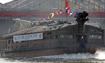 9日,由首爾市復原的龜船離開漢江市民公園二村地區碼頭,正在經過漢江鐵橋下面。龜船計劃通過漢江和臨津江河流的非軍事區,再繞過西海和南海,於13日左右抵達慶南統營市。爲此,首爾市得到了聯合國軍隊司令部的許可,也與北韓方面進行了協商。