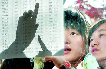 22日,2006學年度高考前一天,來到首爾中區梨花女子高中考場的考生正在確認考場位置。當天,全國75個考區的966個考場進行了預備集合。