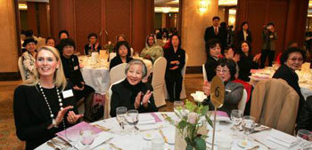 1日下午,在首爾樂天酒店舉行的韓國婦女團體協定會建立46周年紀念外國大使夫人座談會上,各國大使夫人們用熱烈的掌聲歡迎被介紹的國內外貴賓。舉辦座談會的目的在於增進韓國女領導人和外國大使夫人的關係。
