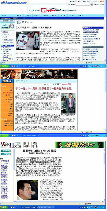 13日正式離開千葉羅德海洋隊成爲自由簽約球員的李承燁很可能歸屬日本職業棒球最高豪門讀賣巨人隊。《日刊體育》、《Sports Hochi》等日本專業體育刊物從14日開始大肆報道李承燁轉會“巨人(讀賣巨人隊的愛稱)”相關的消息。