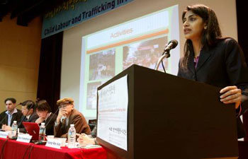 6日和7日在高麗大學國際館舉行的第一屆亞洲人權論壇喚起了亞洲各國對人權問題的關注。圖中,推行湄公河流域人口販賣受害者解救計劃的柬埔寨受害女性支援行動組織代表阿蒂•卡普爾正在進行主體演講。